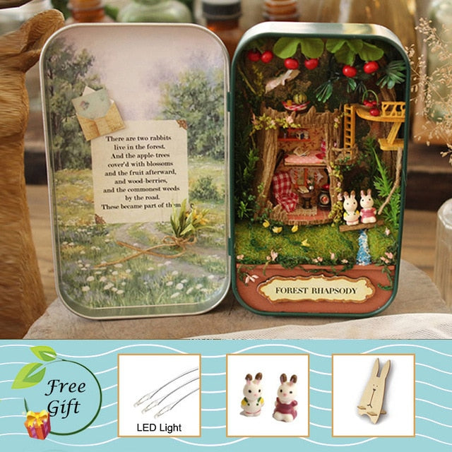 Cutebee DIY House Miniature with Furniture LED Music Dust Cover Model Building Blocks Toys for Children Casa Newv1-v3